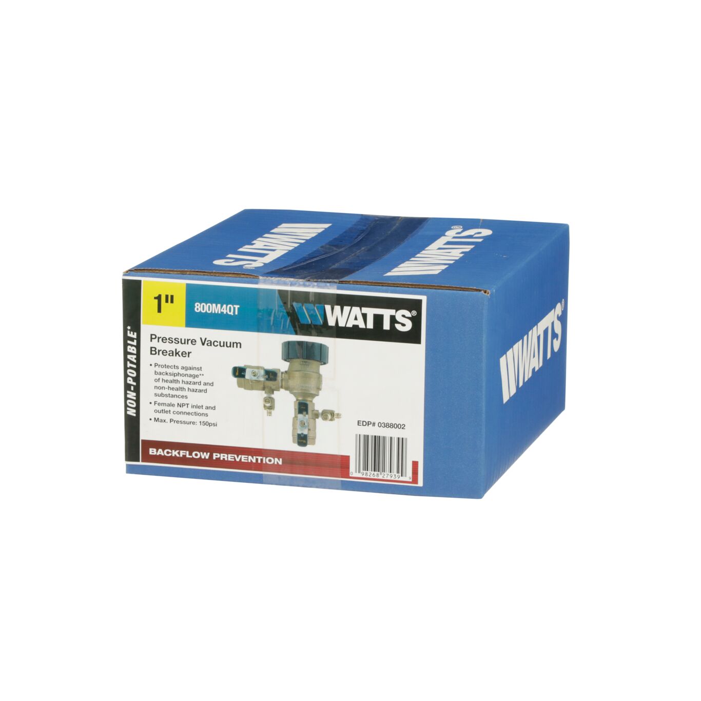 This 1 inch anti-siphon pressure vacuum breaker backflow preventer helps prevent the reverse flow of polluted water from entering into the potable water supply due to backsiphonage. It consists of bronze body construction, silicone rubber check valve disc, plastic check valve seat, stainless steel springs, a bonnet with silicone rubber O-ring seal, a lightweight plastic disc float, tee handle shutoffs, and test cocks for winterization draining. It is ideal in health hazard continuous pressure applications such as irrigation systems and industrial process water systems where the water enters the equipment at or below its flood rim. The maximum pressure is 150 psi (10.3 bar) and the minimum pressure is 15 psi (55kPa).