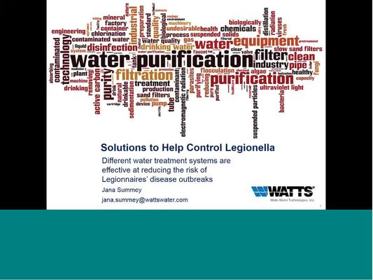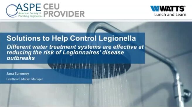 Jana Summey, Healthcare Market Manager at Watts, presented live from our Watts Works Learning Center in North Andover, on how to implement an effective water management program (Powers IntelliStation and Watts SmartStream) that eliminates Legionella bacteria and provides clean, safe water to facilities and communities.