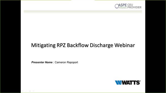 This webinar, hosted by Cameron Rapoport, our Backflow Product Specialist, covers the operation of a reduced pressure zone backflow preventer and basic root cause analysis of a discharging one, as well as how to determine worst case discharge.